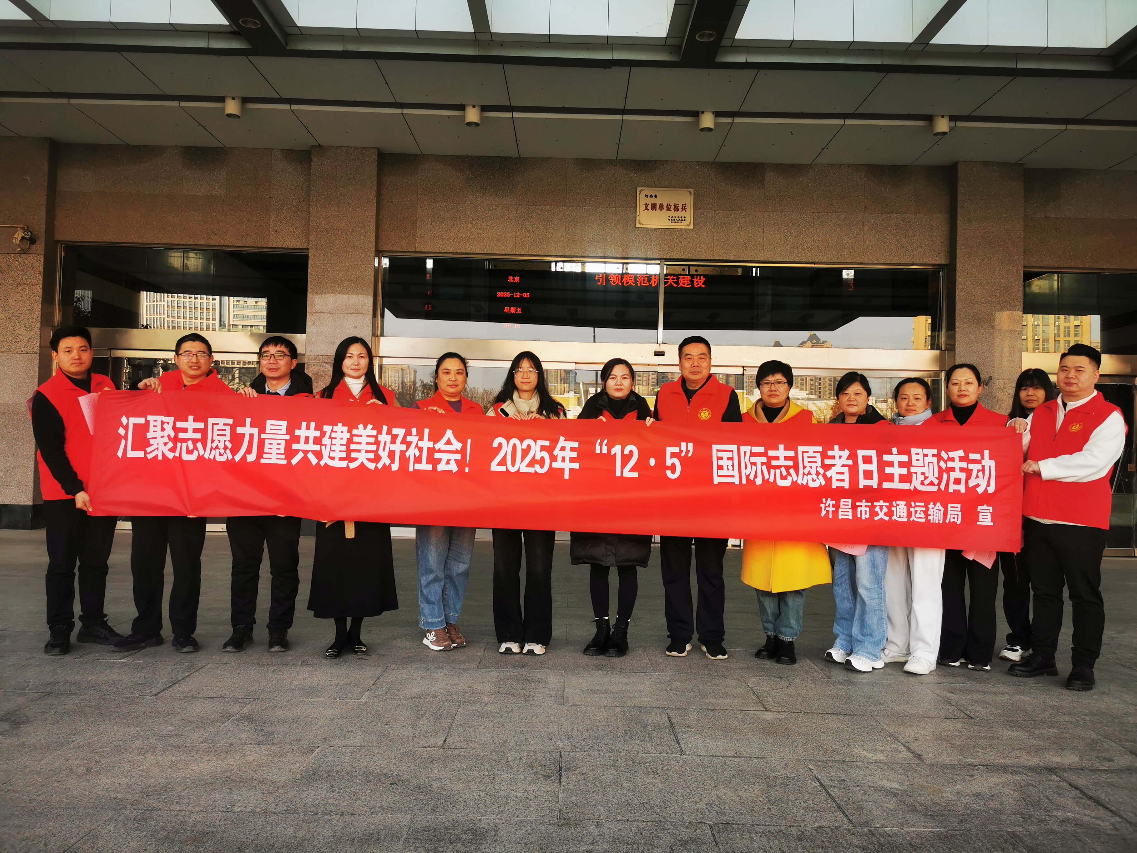 2025年12月5日是第40个国际志愿者日,活动主题是“汇聚志愿力量 共建美好社会”。为弘扬“奉献、友爱、互助、进步”的志愿精神。许昌市交通运输局组织15名党员志愿者在客运东站、高铁东站公交枢纽等开展了形式多样的志愿服务宣传活动,发放宣传资料200余份,倡议书150份,制作宣传展板3块,横幅俩条,营造了人人关心、支持、参与志愿服务活动的浓厚社会氛围。